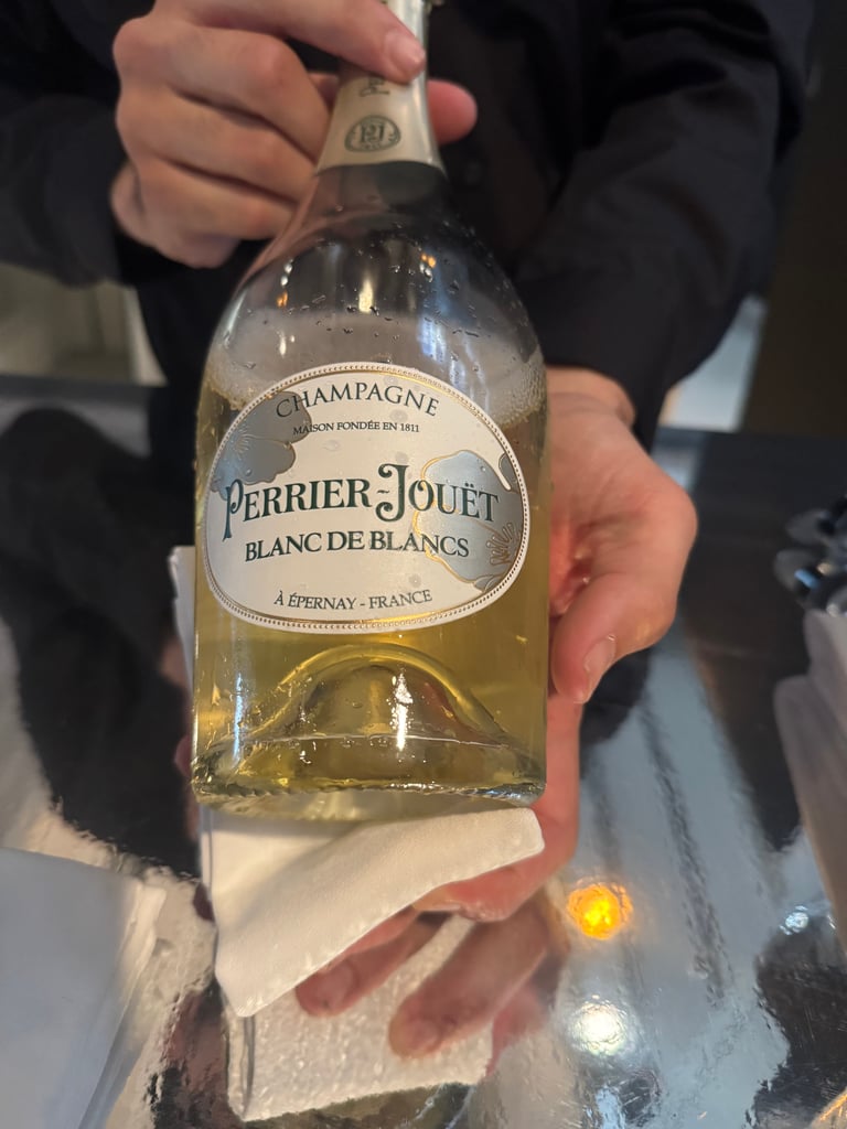 Nach einem alkoholfreien Welcome-Drink ( Johannisbeer-Reduktion) und einem Gläschen Champagner (Perrier-Jouët, Blanc de Blancs) wurden wir an einer langen, höchst modern eingedeckten Tafel platziert, die Ausblick auf eine ebenerdige Kanzel bot, hinter der Madsen und sein Team wie kulinarische DJs werkelten. Gerne konnte man aufstehen und zuschauen, wie hier arrangiert und komponiert wurde; überhaupt moderierte Mona Röthig diesen Abend auf eine so lockere und trotzdem höchst professionelle Weise, dass man sie in ihrer früheren Wirkungsstätte, dem Tantris Maison Culinaire, wahrscheinlich jetzt schon schwer vermissen wird.
