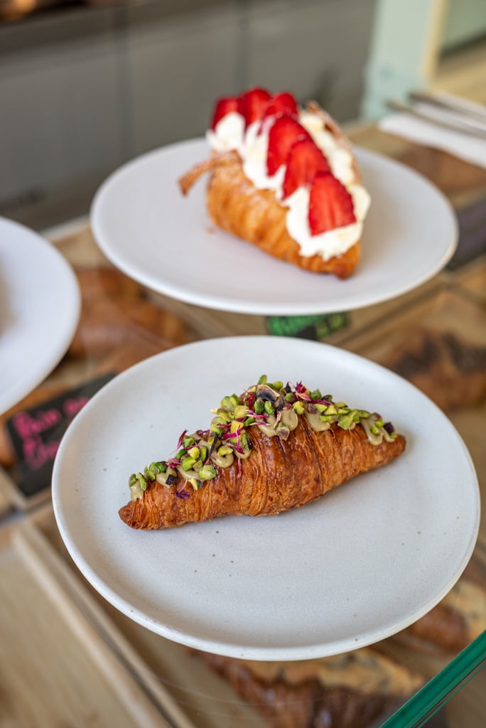Der Teig für die Croissants kommt aus Frankreich – das Team hat lange gesucht, um den wirklich besten Teig mit viel Butter zu finden – wird dann vor Ort gebacken und von Hand befüllt. Für Croissant-Fans ein Muss.