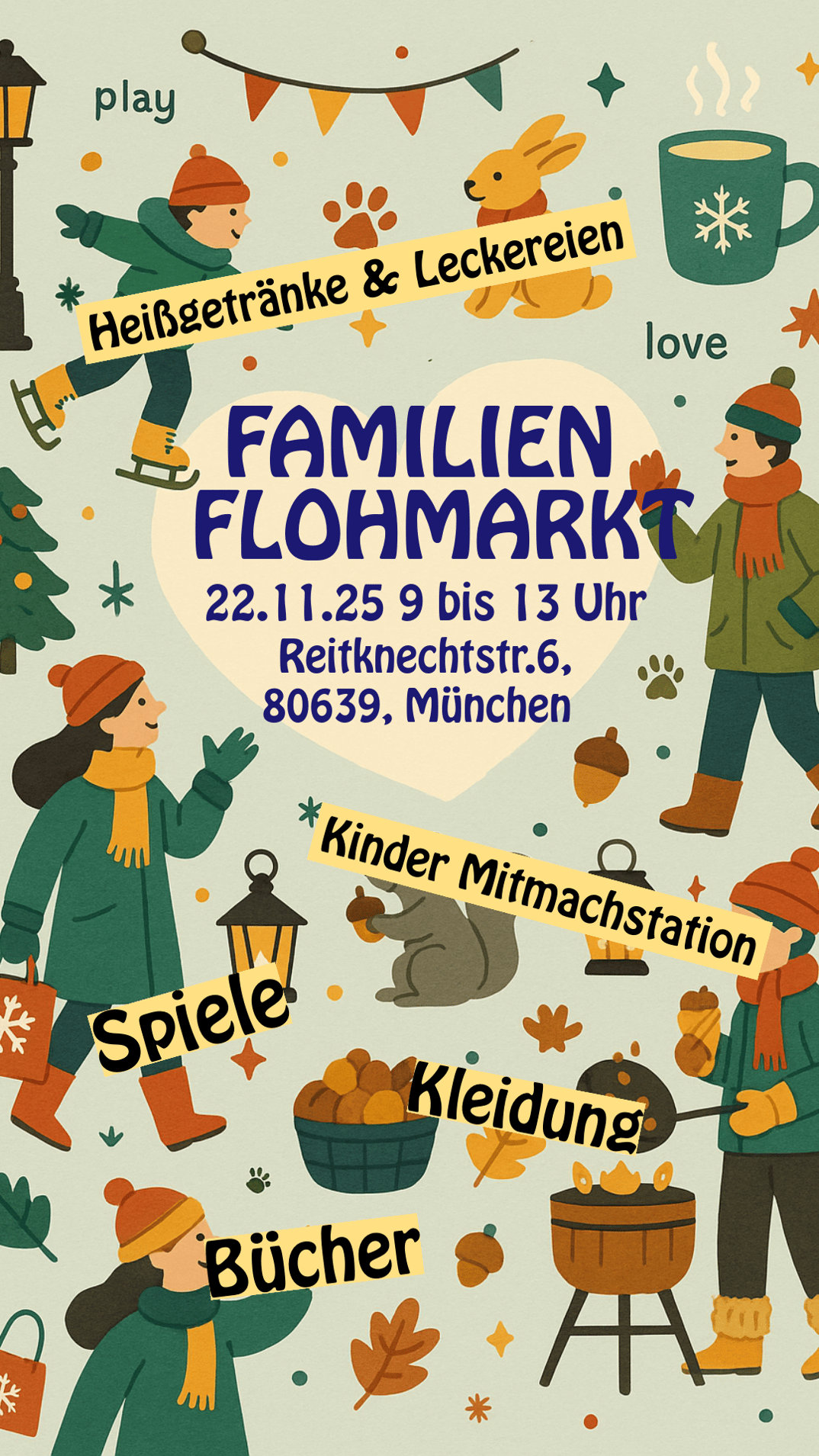 Am 6. Dezember 2025 (nicht mehr am 22.11.!) findet im Backstage München ein gemütlicher Familienflohmarkt statt. Hier gibt es alles, was das Flohmarktherz höher schlagen lässt. Kinderkleidung, Kinderspielzeug, Haushaltsartikel, Kleidung für die ganze Familie, Bücher, Krims Krams und besondere Fun