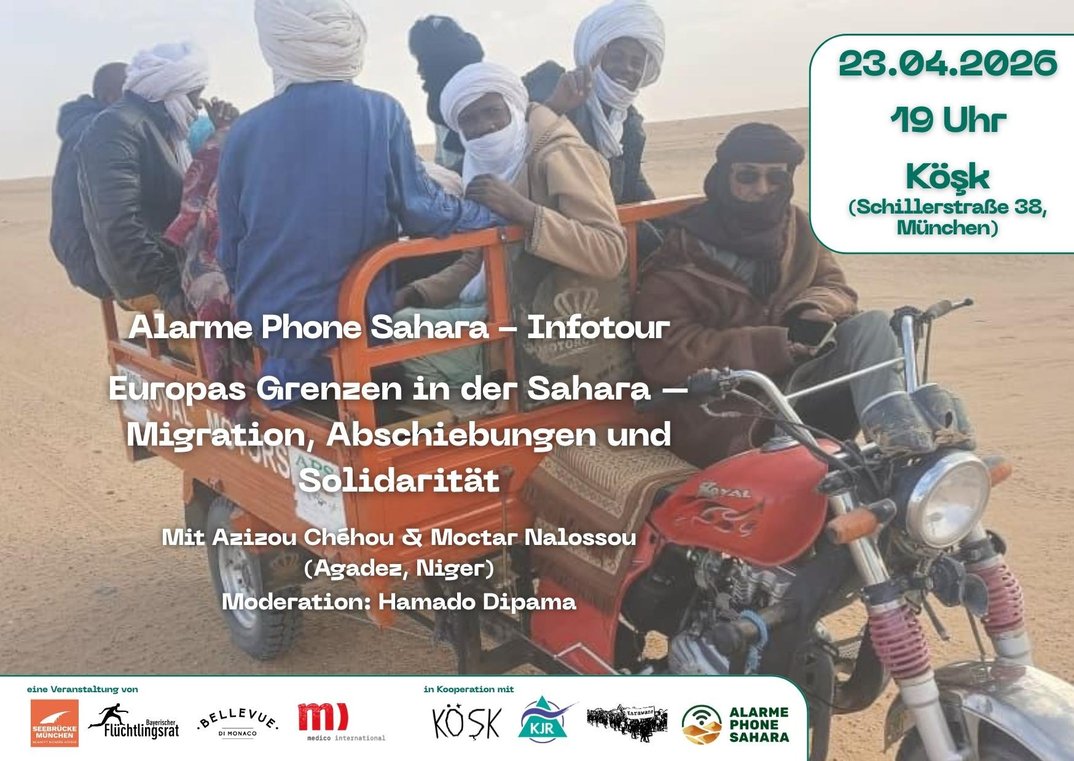 Europas Grenzen in der Sahara – Migration, Abschiebungen und Solidaritätmit Azizou Chéhou & Moctar Nalossou (Agadez, Niger)Die europäischen Grenzpolitiken enden nicht an den Außengrenzen der EU. Deals mit Staaten in Nord- und Westafrika zielen schon weit südlich der Mittelmeerküste auf repressive Kontrolle von Migration und Flucht – mit verhängnisvollen Folgen für Menschen auf der Flucht.…