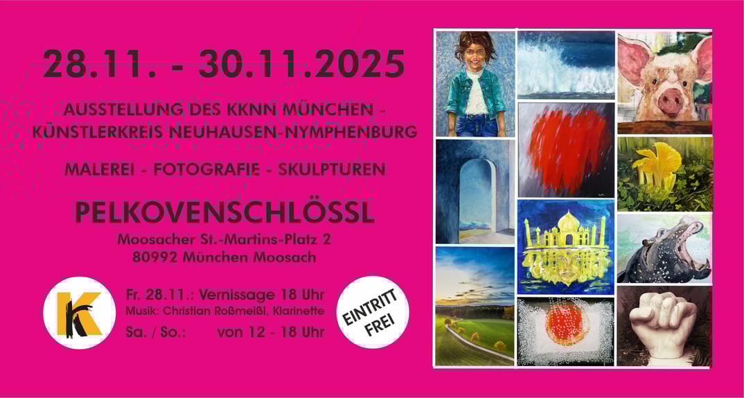 Der Künstlerkreis Neuhausen-Nymphenburg KKNN ist wieder zu Gast im Pelkovenschlössl und stellt aktuelle Arbeiten von elf Mitgliedern vom Freitag, 28. November bis Sonntag, 30. November 2025 aus.