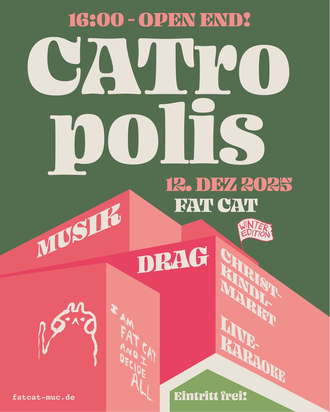Das Kulturzentrum Fat Cat im alten Gasteig lädt am 12. Dezember 2025 zum CATropolis Festival ´Winter Edition´ ein! Ab 16 Uhr öffnet der alte Gasteig seine Türen für ein winterliches Festival, das die Vielfalt und kreative Energie der Künstler*innen, die dort eingezogen sind, feiert – Open End! Ein Tag voller Kunst, Kultur und Austausch.