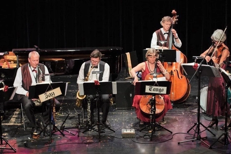 Das Ballhausorchester La Rose Rouge präsentiert all die Tanzschlager, die in den 20er/30er Jahren des vorigen Jahrhunderts in den Charts waren. Charleston, Shimmy, Tango und Black Bottom – neue Tänze erobern das Tanzparkett, jazzige Importe aus Amerika schleudern dem tanzwütigen Publikum die Synkopen um die Ohren. Josephine Baker entzweit die Welt mit nichts und ein paar Südfrüchten, die Melodien der Comedian Harmonists pfeift man auf den Straßen, das Orchester Paul Whiteman gastiert in den Ballsälen Europas und das Kino verbreitet die Songs der frühen Stars wie Marlene Dietrich, Zarah Leander oder Hans Albers.