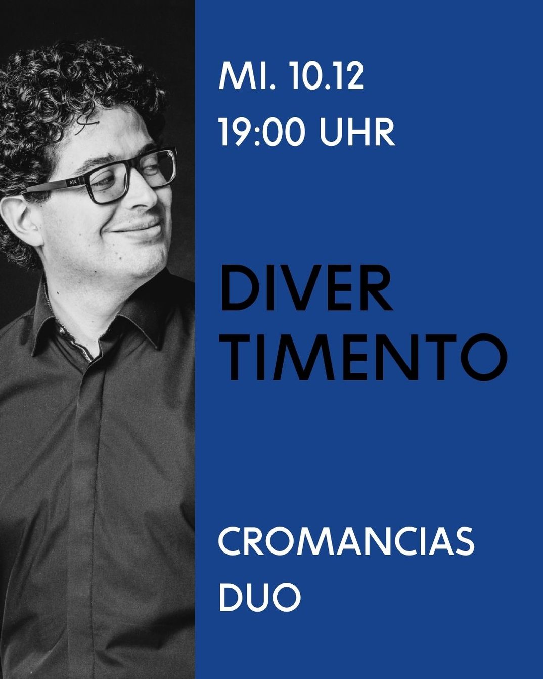 Das Cromancias Duo lädt zu ihrem neuen Konzertprogramm „Divertimento“ ein. Neben Stücken aus dem 19. und 20. Jahrhundert wird ein Werk präsentiert, das speziell für das Duo im Jahr 2019 komponiert wurde.