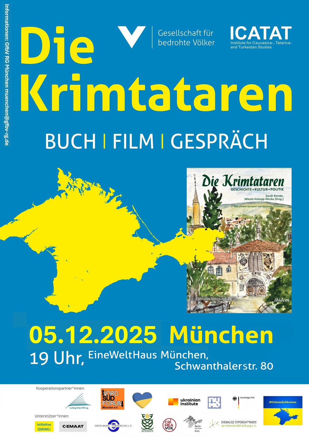 Im Rahmen der Veranstaltung wird das Buch „Die Krimtataren, Geschichte, Kultur, Politik“ vorgestellt und Ausschnitte einer Dokumentarfilm-Serie über krimtatarische Spuren in Deutschland gezeigt.