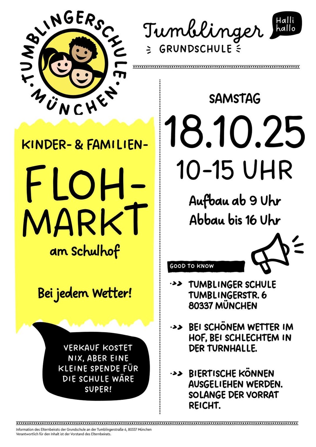 Flohmarkt für Kinder & Familien in der Tumblinger Schule
