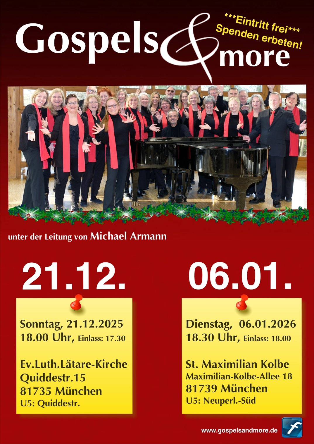 Das traditionelle Weihnachtskonzert von Gospels&more findet am Sonntag, den 21. Dezember 2025 um 18.00 Uhr in der Lätarekirche,