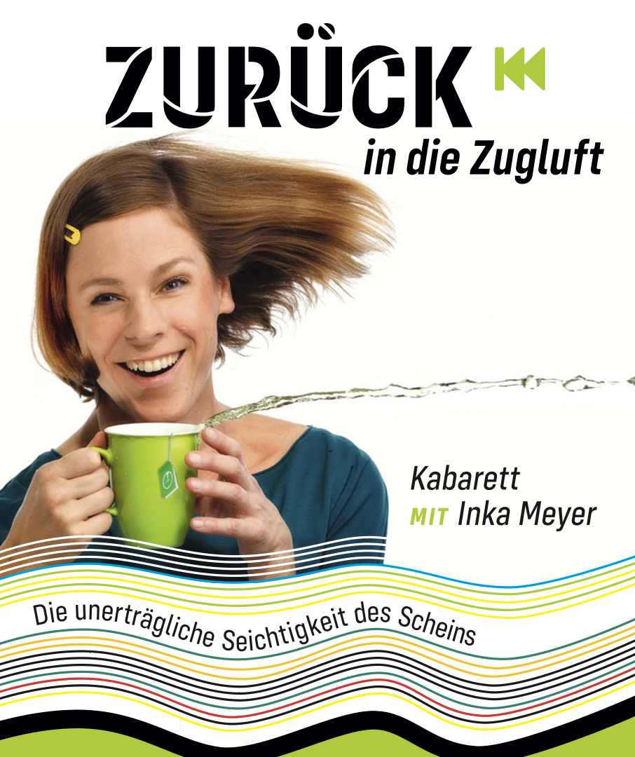 Als Kind war jeder Tag ein Sonntag. Als Student immer Freitag. Und heute ist irgendwie ständig Montag. Die Work-Life-Balance zu finden gleicht einem Hochseilakt ohne Netz. Und um diesen Stress abzubauen, betreiben wir Extremsport! Und laufen dreimal täglich Amok. Unser Alltag ist ein Ausnahmezustand, der zur Regel wurde. „Zurück in die Zugluft“ von Inka Meyer ist eine hochkomische Suche nach dem verlorenen Spaß im Leben und eine heitere Kampfansage gegen die unerträgliche Seichtigkeit des Scheins. Im Anschluss an diese Show werden Sie laut ausrufen: „Freunde! Wenn ihr Probleme braucht, ich bin immer für euch da.“