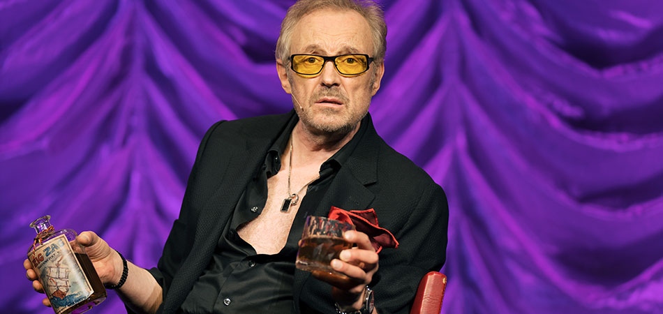 „Immer is irgendwas. Entweder die Füße schlafen mir ein. Oder sie jucken. Dann krieg ich wieder keine Luft, wenn ich schneller geh. Oder ich hab einen Schweißausbruch. Dann friert mich wieder. Das Essen schmeckt mir nimmer, der Sex ist fad, die Hosen sind zu eng. Was is das bitte? – Des muss alles dieser Klimawandel sein, oder? Temperaturen hat’s im Sommer wie in den Tropen! Dadurch gibt’s auf einmal diese riesigen Insekten! Die hat’s doch früher net geb’n! Wenn die dich stechen, kriegst’ eine Schwellung, die geht monatelang net weg! Und die Pflanzen! Die werd’n jetzt auch schon deppert. Die spinnen, die Pflanzen! Die wachsen jetzt alles zu! Meine Theorie ist, die Pflanzen wollen die Herrschaft über den Planeten zurück, sie hab‘n einen geheimen Plan. Sie wollen die totale Zerstörung der abendländischen Kultur und des österreichischen Volks-Rock’n Roll. Das soll alles ersetzt werden durch äh, Photosynthese.“