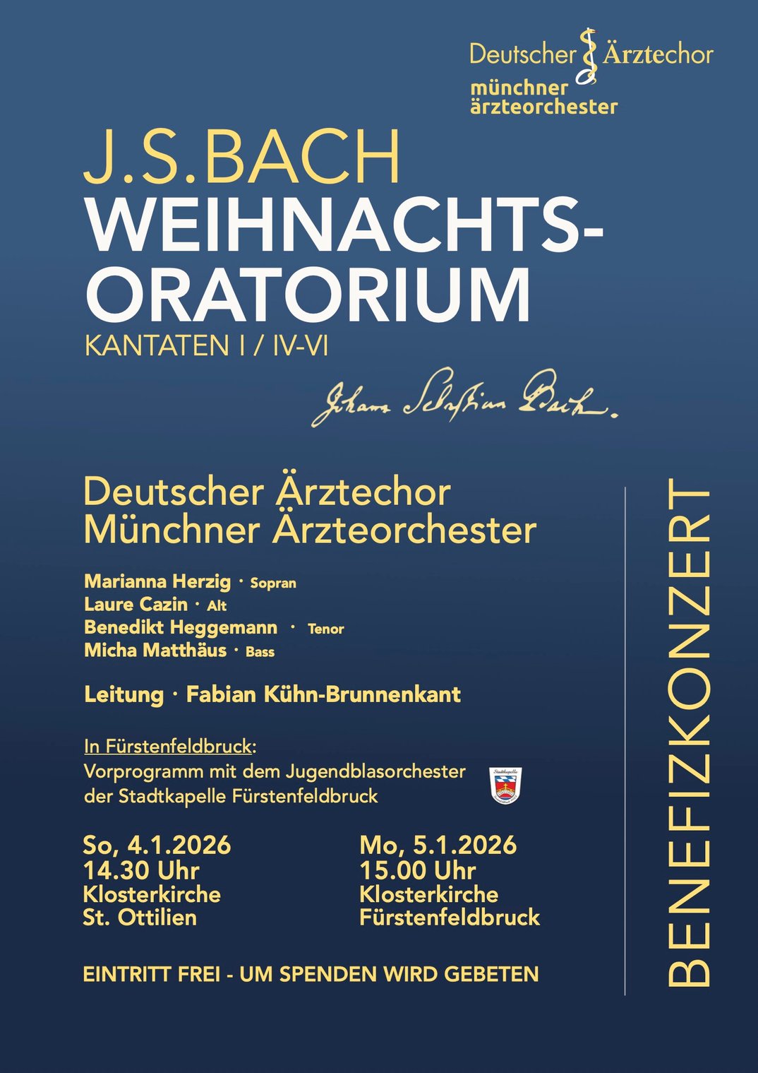 In der ersten Januarwoche 2026 führt der Deutsche Ärztechor mit dem Münchner Ärzteorchester unter der Leitung von Fabian Kühn-Brunnenkant das Weihnachtsoratorium von J.S. Bach auf (Kantate I und die Kantaten IV-VI).