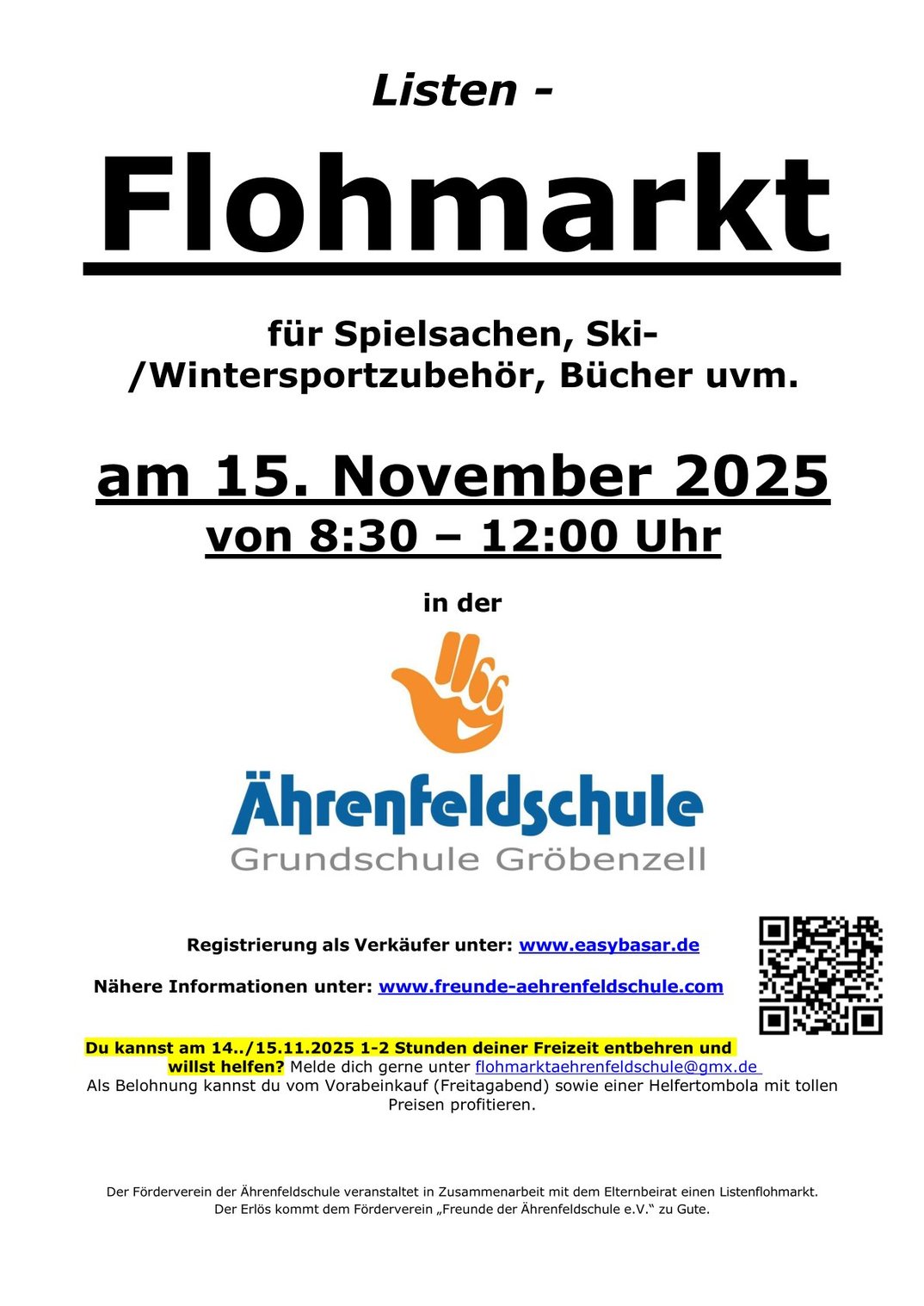 weitere Informationen unter www.freunde-aehrenfeldschule.com/flohmarkt