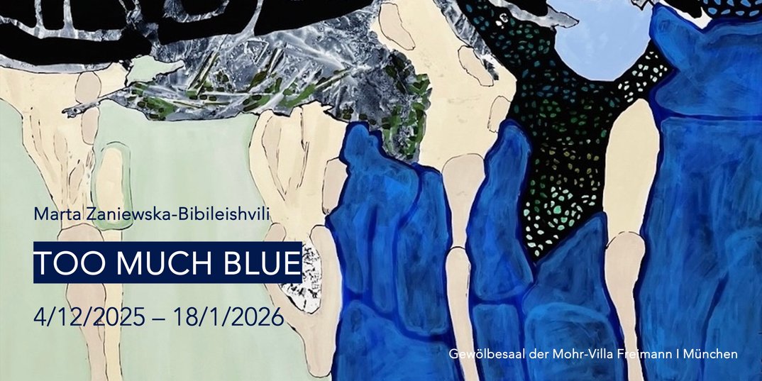 Ein Raum voller Blau, mal zart wie ein kaum hörbarer Ton, mal überwältigend wie eine Welle: Mit ihrer neuen Ausstellung „Too Much Blue“ verwandelt die Künstlerin Marta Zaniewska-Bibileishvili den Gewölbesaal der Mohr-Villa München in ein intensives Erlebnis.
