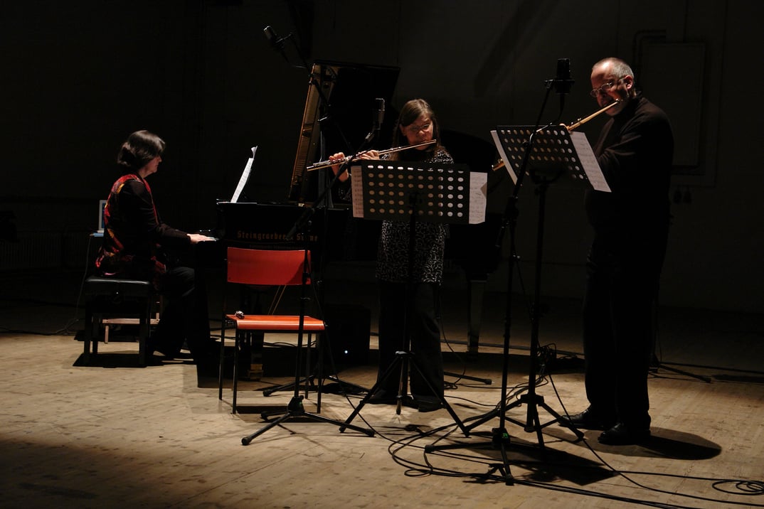 Neben der traditionellen Literatur für diese Besetzung gehören Werke, die dem Ensemble gewidmet sind, zu seinem Kernrepertoire. Europaweit auf Festivals und in Konzerten präsentiert das MÜNCHNER FLÖTENTRIO seine außergewöhnlichen Programme. Viele Rundfunkaufnahmen sowie zahlreiche CDs dokumentieren die gemeinsame Arbeit, die an diesem Abend eine Erweiterung erfährt: Werke aus jüngster Zeit für zwei Flöten – auch Piccolo, Alt- und Bassflöten – und Klavier von Pierre-André Bovey, Jean-Luc Darbellay, Dorothee Eberhardt, Markus Hofer, Johannes X. Schachtner und Enjott Schneider werden zur Ur- bzw. Erstaufführung gelangen.