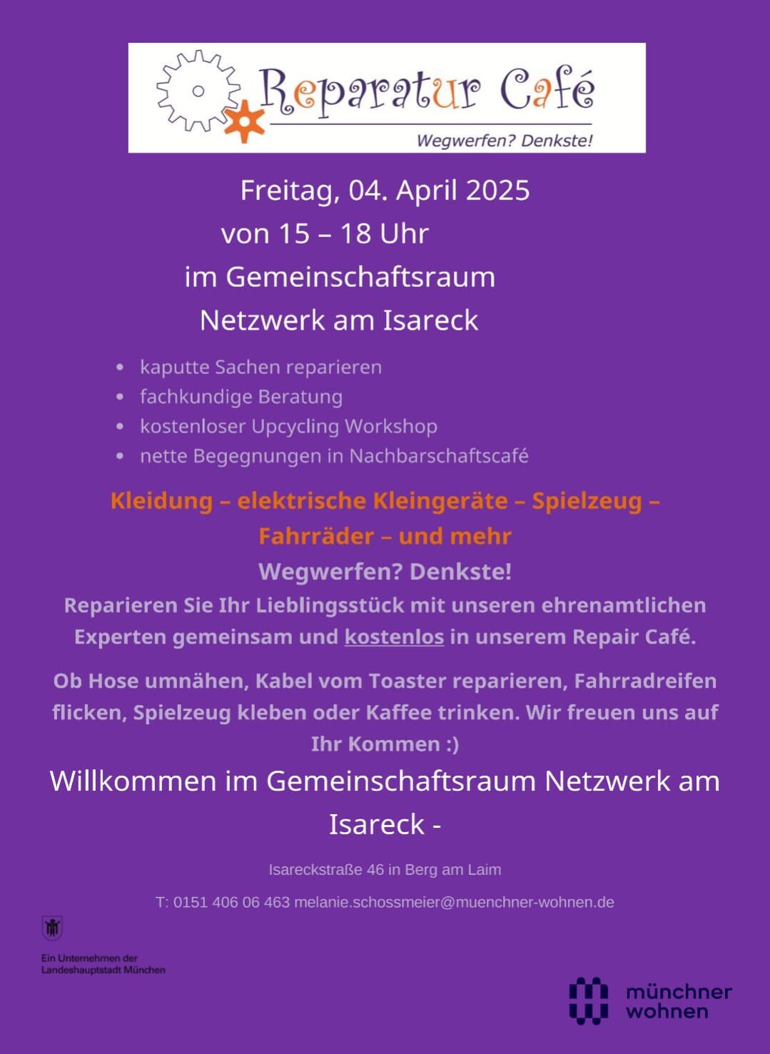 Repaircafé im Gemeinschaftsraum Netzwek am Isareck