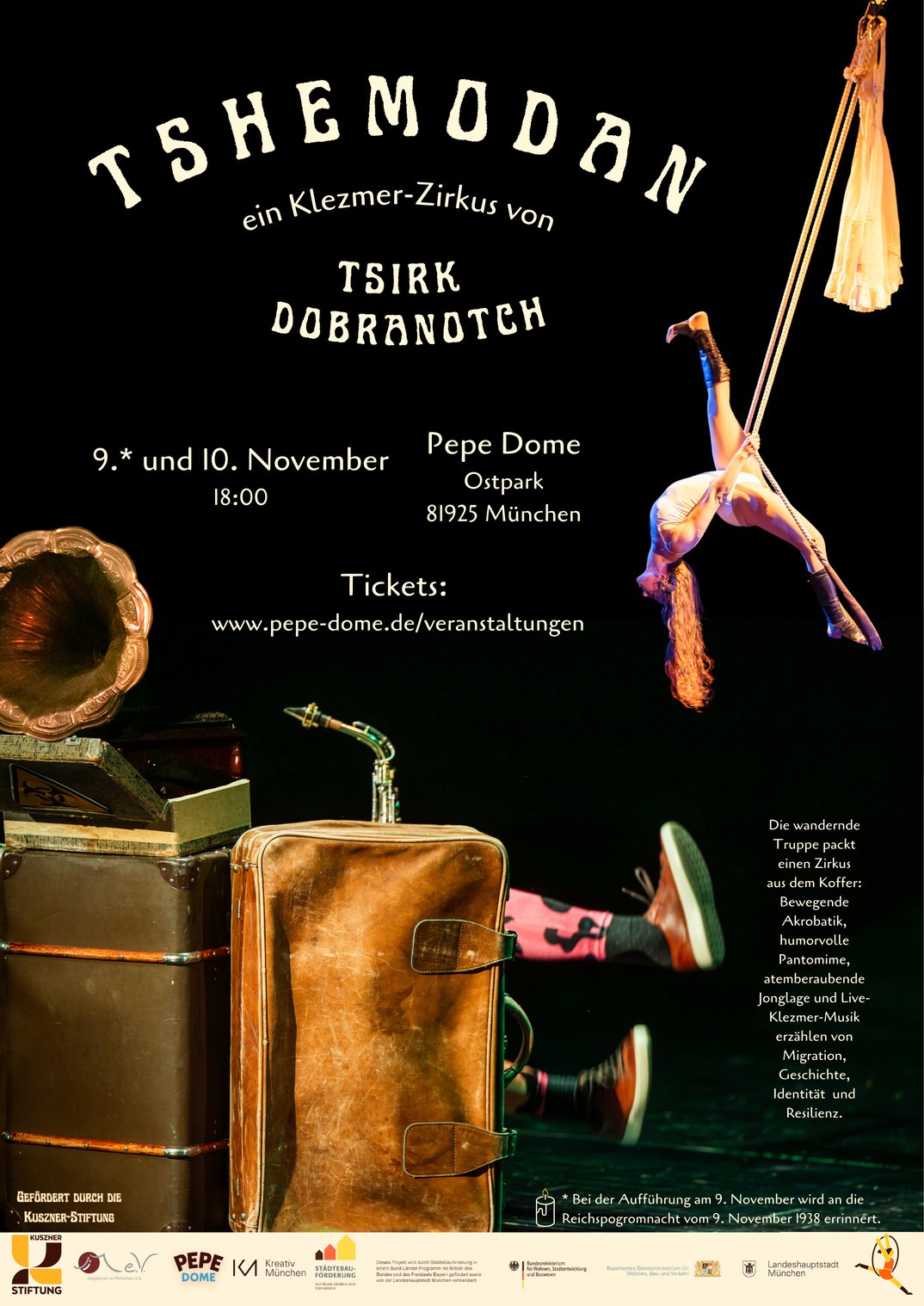Die Show gipfelt in einer ekstatischen Klezmer-Tanzparty, bei der das Publikum in gemeinsamer Musik und Bewegung schwelgt. Inmitten der heutigen politischen und sozialen Unruhen, Gewalt und Polarisierung fördert „Tshemodan“ Einheit, Vielfalt und Widerstandsfähigkeit durch universelle Geschichten von Bewegung, Musik, Kultur und Verbindung.
