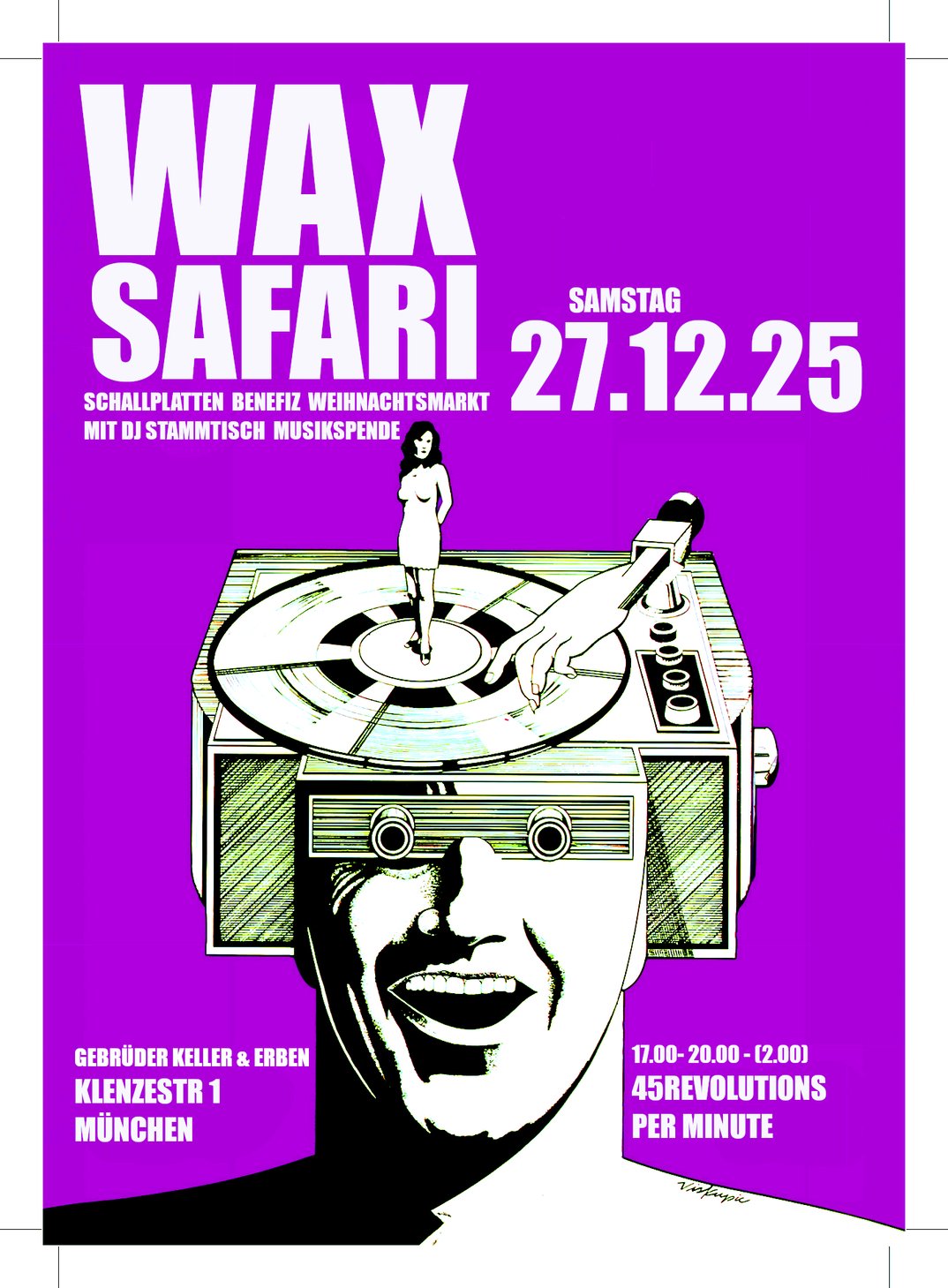 Die WAXSAFARI, Bayerns größter Schallplattenflohmarkt mit Seele lädt ein zum gemütlichen Weihnachtsbenefiz mit DJ Reigen und Schallplattenversteigerung für die Alzheimer Hilfe München am Samstag den 27.12.25 von 17.00-20.00 im Kulturkaufhaus Gebrüder Keller und Erben in der Klenzestr.1. 80339 München, gleich hinter dem Viktualienmarkt.