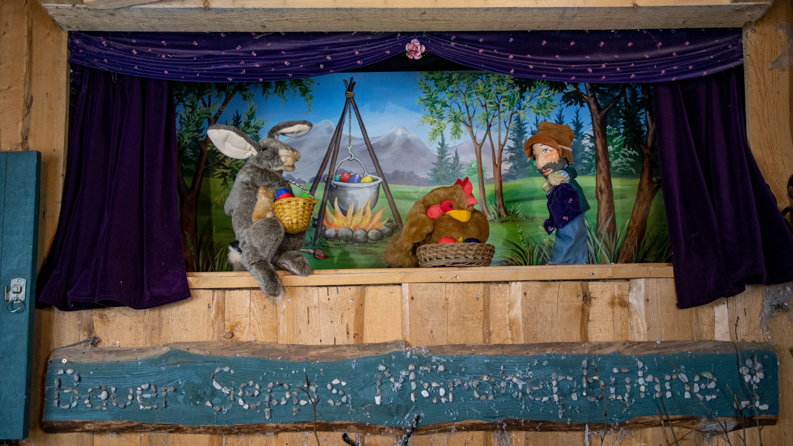 Das wunderbare Puppentheater „Bauer Sepp’s Märchenbühne“ auf dem Blaslhof in Uffing am Staffelsee spielt die Oster-Geschichte „Bauer Sepp und Osterhase Lilli“ vom Hasenmädchen Lilli, die so gerne Osterhäsin werden möchte.