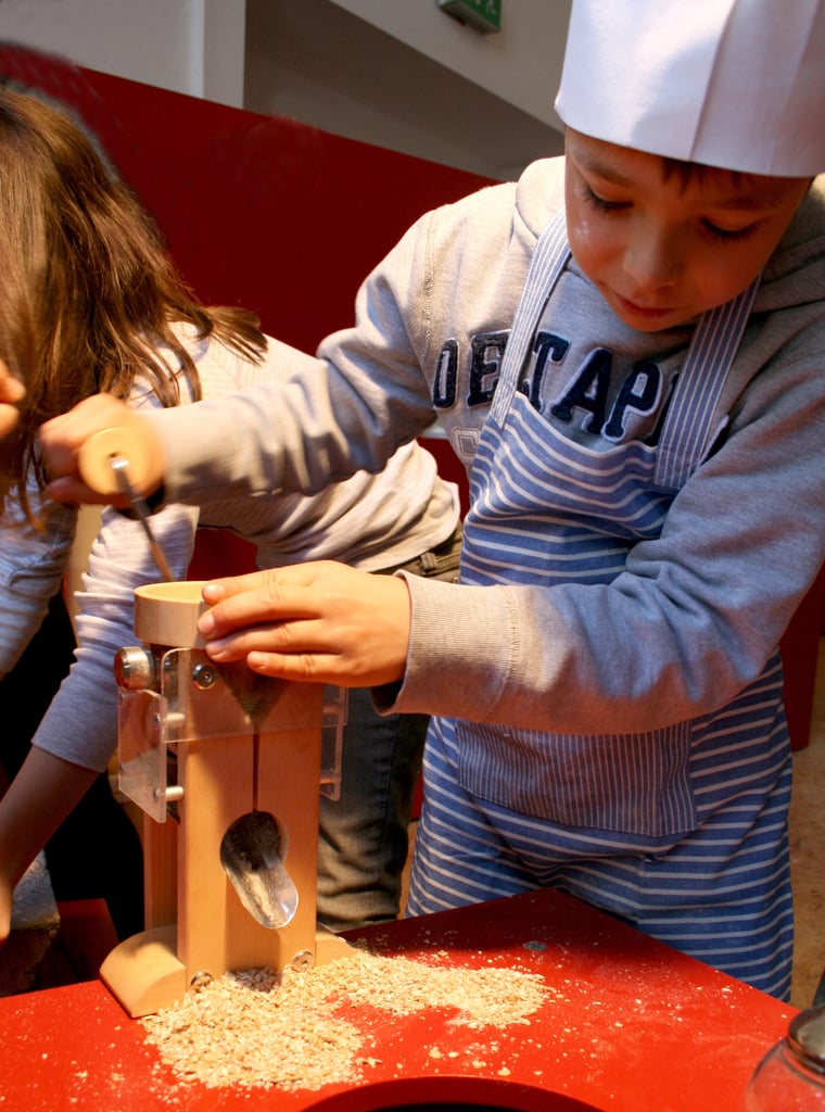 In der interaktiven Ausstellung wird gemolken, gemahlen, geangelt und eingekauft: Wie wächst Gemüse? Warum sind Bienen und Wasser so wichtig? Wie viele Äpfel stecken im Saft? Und was genau macht unsere Zunge, wenn etwas süß oder sauer schmeckt? Eine übergroße Nase und eine riesige Zunge sorgen garantiert für Aha-Momente.