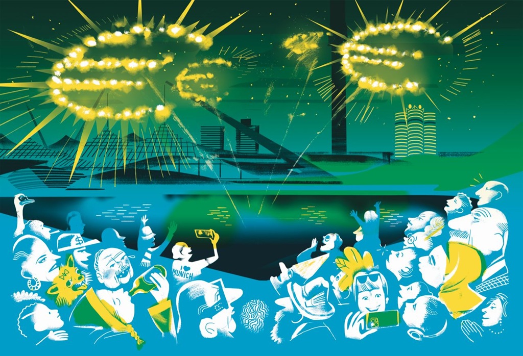 Dabei spricht er stets als Teil der vermeintlichen Weltstadt mit Herz von „wir“ und „uns“. Und geht es um unsere Beziehung zum Umland, das Reinheitsgebot oder die hiesigen Mietpreise: Zu Beginn der Ausführungen erwischt man sich oft dabei anerkennend zu nicken, um gegen Ende der Ausführungen erstaunt zu lachen, weil Feiten den Themen dann eben doch noch unerwartete neue Perspektiven abgewinnen kann. Und da wir Münchner*innen uns manchmal entlegenste Talente grundlos ein Stück weit selbst zutrauen, wie eine weitere treffende Beobachtung konstatiert, fühlt sich die Lektüre stellenweise so an, wie gemeinsames Losgranteln, bei dem man sich als Gesprächspartner ohne eigenes Zutun enorm eloquent vorkommt. Nicht nur deswegen: Ein großer Genuss. Für die Illustrationen fehlt mir das einordnende Vokabular. Mich erinnert der in Gelb- und Blautönen umgesetzte Stil wohlig an Jacques-Tati-Filmplakate. Dabei sind die Bilder so schön, satirisch und zugleich liebenswert, dass man sie sich gerahmt sowohl im bajuwarisch-stolzen Haushalt neben dem Wolpertinger an der Wand als auch in der Punker-WG neben einem Dead-Kennedys-Plakat hängend vorstellen kann. Allen Menschen in diesem Spannungsfeld sei das wunderschöne Buch abschließend auch als Weihnachtsgeschenkoption empfohlen.