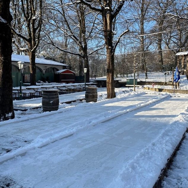 Am Nockherberg ist das Eisstockschießen ab 5. November 2025 möglich, die Saison geht anschließend bis Anfang Februar. Dieses Jahr stehen sogar zwölf Eisbahnen zur Verfügung, zu Preisen zwischen 59,00 € und 119,00 € pro Bahn und Stunde – je nach Monat, Wochentag und Uhrzeit. Tipp: Tatsächlich ist es so, dass die Bahnen am Wochenende günstiger sind! Im Paulaner am Nockherberg könnt ihr mit Freund*innen oder Kolleg*innen sportlich die Kräfte messen und zwischendurch an der „Dahoam in Minga”-Bar heißen Glühwein, leckere Longdrinks oder Flammkuchen ordern. Gruppen können beim Reservieren gleich vier Liter Feuerzangenbowle (reicht für 16 Tassen) dazubestellen, dann ist die stetige Versorgung an der Bahn sichergestellt.
