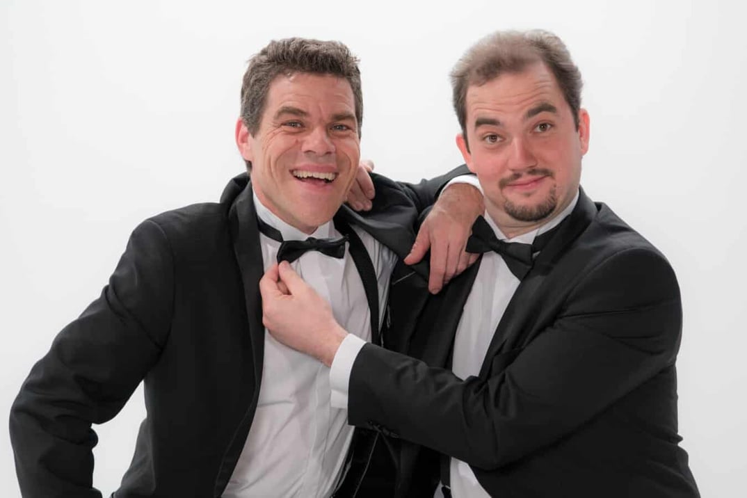 Musikkabarett in Höchstform: Das Duo Notenlos (Bastian Pusch und Andreas Speckmann) verwandelt den Silbersaal auf Zuruf des Publikums live in ein Musical, eine Komödie oder Konzert.