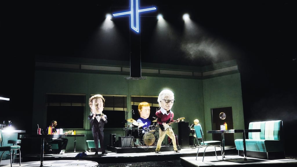 Ein paar sehr seltsame Engel landen in einem American Diner: die „Very Rich Angels” sind Bill Gates, Mark Zuckerberg und Elon Musk, nun zusammengedacht in ein „intergalaktisches Musical” von Madame Nielsen. Als Claus Beck-Nielsen 1963 geboren, gelingt der dänischen Multi-Künstlerin an den Kammerspielen mit ihrer ersten Theaterproduktion in Deutschland ein skurril-hinterfotziges Kabinettstück (Mitarbeit und Regie: Christian Lollike). Nielsen selbst gibt in der „Confessional Bar” den hageren Kellner, der die Großkopferten – das sind sie wortwörtlich mit ihren Riesen-Pappmachéschädeln – zum Reden bringt: die Multimilliardäre sind nicht glücklich, Zuckerberg etwa hadert mit dem Hass auf Facebook. Neue Pläne müssen her: ein Klo zum Beispiel, das Ausscheidungen in die Nahrungskette zurückführt. Konkret wird’s dann mit Musks (ja tatsächlicher) Idee: sie wollen zum Mars! Christian Löber (Gates), Annette Paulmann (Musk) und Elias Krischke (Zuckerberg) stolpern und steppen nicht nur durch den Laden, sie sind auch brutal gute Musiker und Sänger, von Melancholie bis Punk, Tom Waits lässt grüßen. Wenn die Köpfe runter sind, ist die Figurenzeichnung herrlich subtil und auch im Absurden erschreckend konsequent: Zuckerberg als Messias am Neonkreuz. Putin kommt auch noch, der gefährliche Jammerlappen (großartig: Jelena Kuljić) darf dann doch nicht mit zum Mars, er übernimmt dafür die Erde. Umjubelte 90 Minuten (Spielzeitstart Kammerspiele: 14.9.).